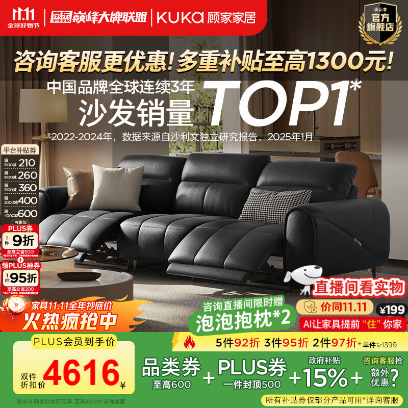 顧家家居 意式真皮沙發(fā)四人位組合 現(xiàn)代客廳輕奢小戶型頭層牛皮沙發(fā)1107