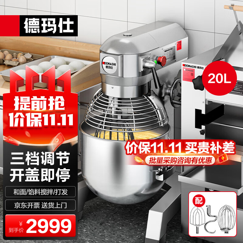 德瑪仕(DEMASHI)和面機(jī)商用【20升】 廚師攪拌機(jī) 打蛋機(jī)器鮮奶打發(fā)奶油機(jī) 食堂 多功能三合一DMS-JBJ-20PT-Y1