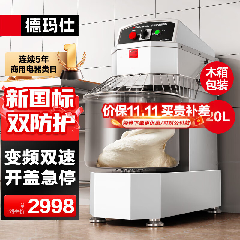 德瑪仕(DEMASHI)和面機(jī)商用雙動(dòng)雙速全自動(dòng)面粉攪拌機(jī)多功能活面攪面打面條機(jī)食堂包子饅頭SHB-SSD20A