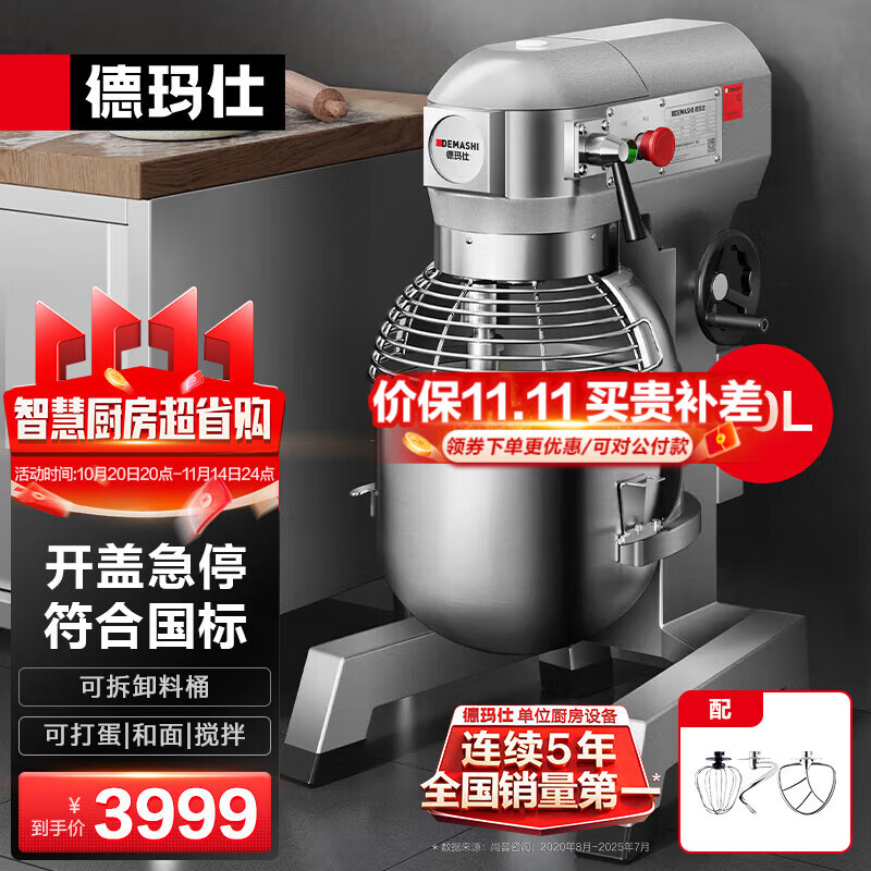 德瑪仕(DEMASHI)商用全自動(dòng)攪拌機(jī)和面機(jī)電動(dòng)攪面機(jī)打蛋打奶油攪餡拌餡機(jī)多功能廚師機(jī)SHB-BP-BM20(京倉(cāng)發(fā)貨)