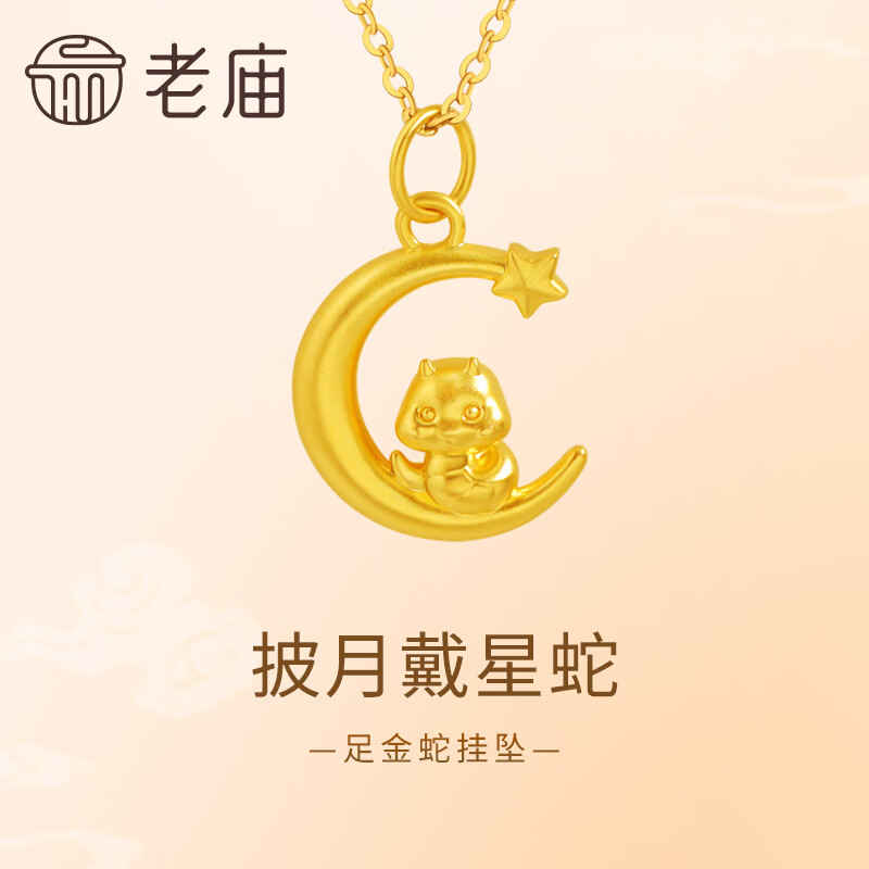 老廟黃金足金5D披月戴星蛇掛墜本命年自戴送禮悅己甄品甜美可愛