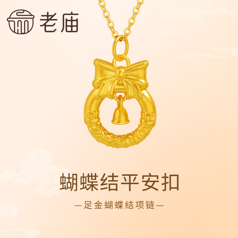 老廟黃金足金5D蝴蝶結(jié)平安扣掛墜時(shí)尚精美寓意平安如意氣質(zhì)顯白