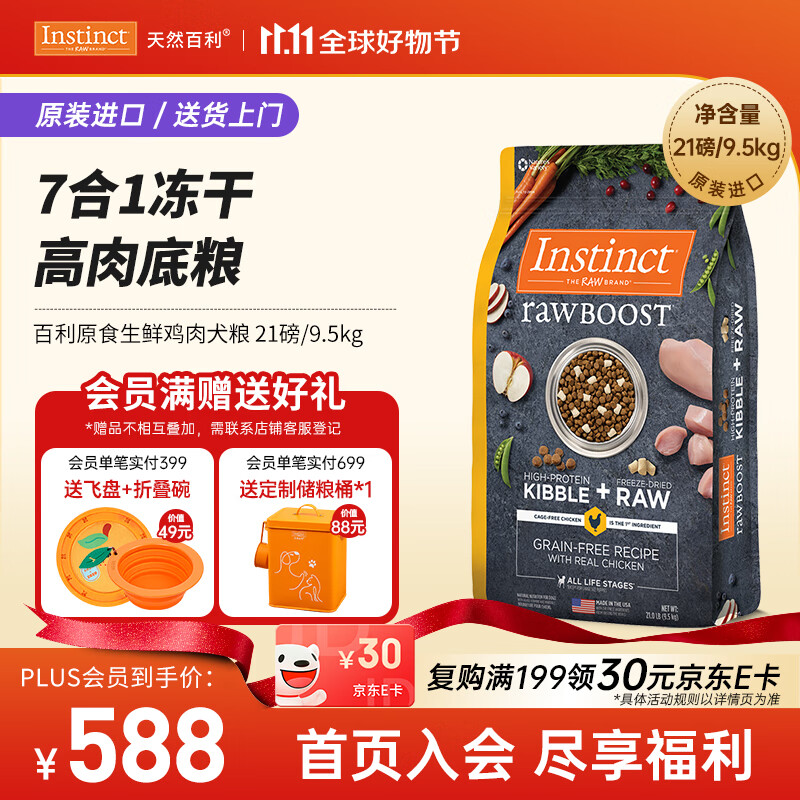 instinct天然百利狗糧原食生鮮雞肉雙拼凍干強適口主糧全犬糧21磅/9.5kg