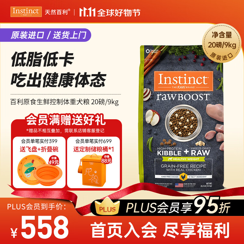 instinct天然百利進口無谷狗糧雙拼凍干低卡減重成犬糧20磅/9kg