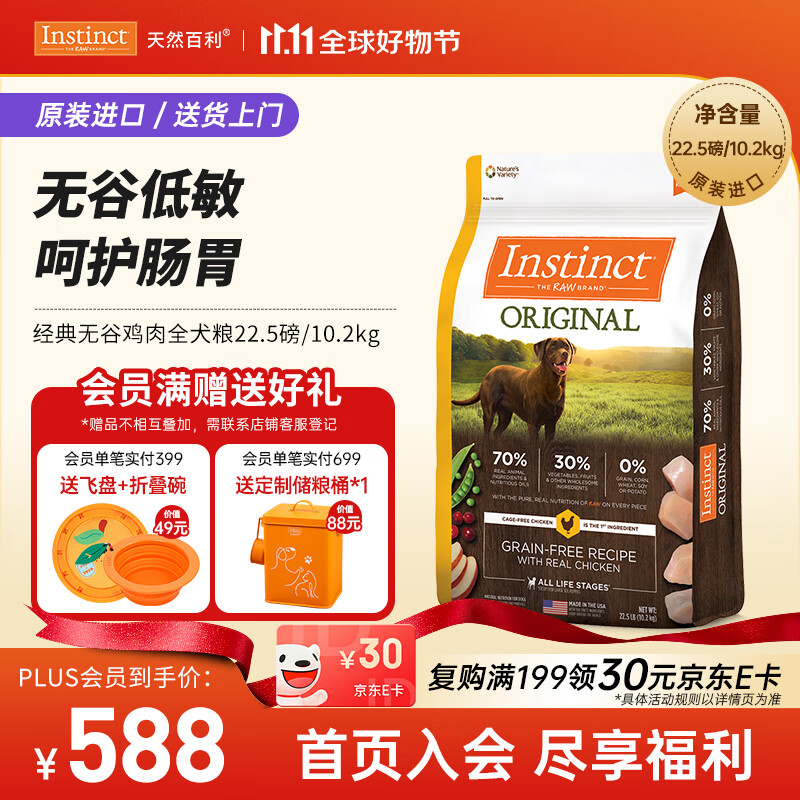 instinct天然百利狗糧進口無谷雞肉全犬糧大小型犬通用主糧22.5磅/10kg
