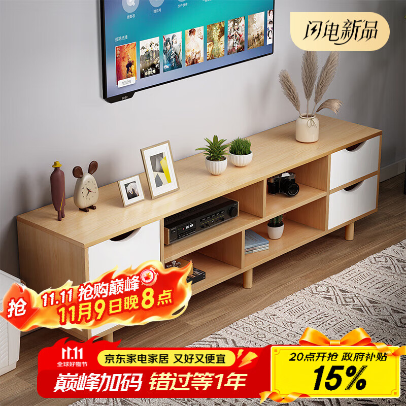 普派電視柜現(xiàn)代簡約小戶型臥室客廳家用電視機臺柜子升級加固百搭輕奢 橡木色兩抽 120x30x60cm